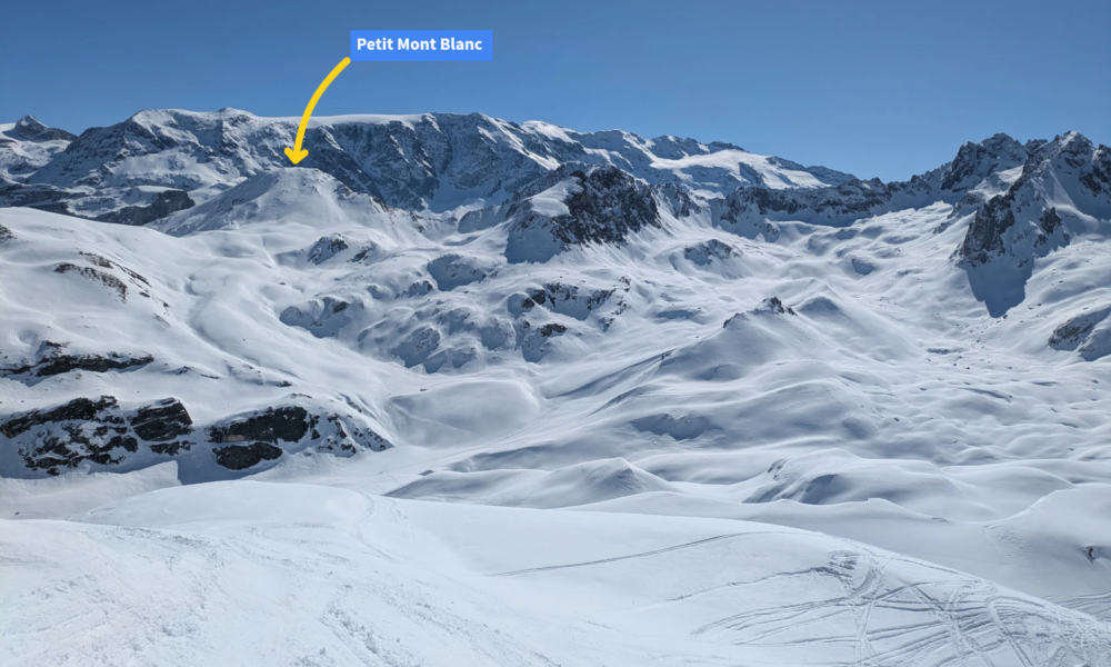 With clear views all around, Pralognan and La Vanoise to the east, Aiguille du Fruit and our route up to the west, and a larger Mont Blanc to the north this was a much nicer environment to enjoy my sandwiches than stuck in the Saulire Express 2 lift.
